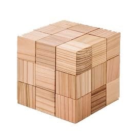 津久井の森で間伐した杉材の「立方体」を7つのパーツに制作した「パズル」です。1面が9個ずつの「立方体」になります。